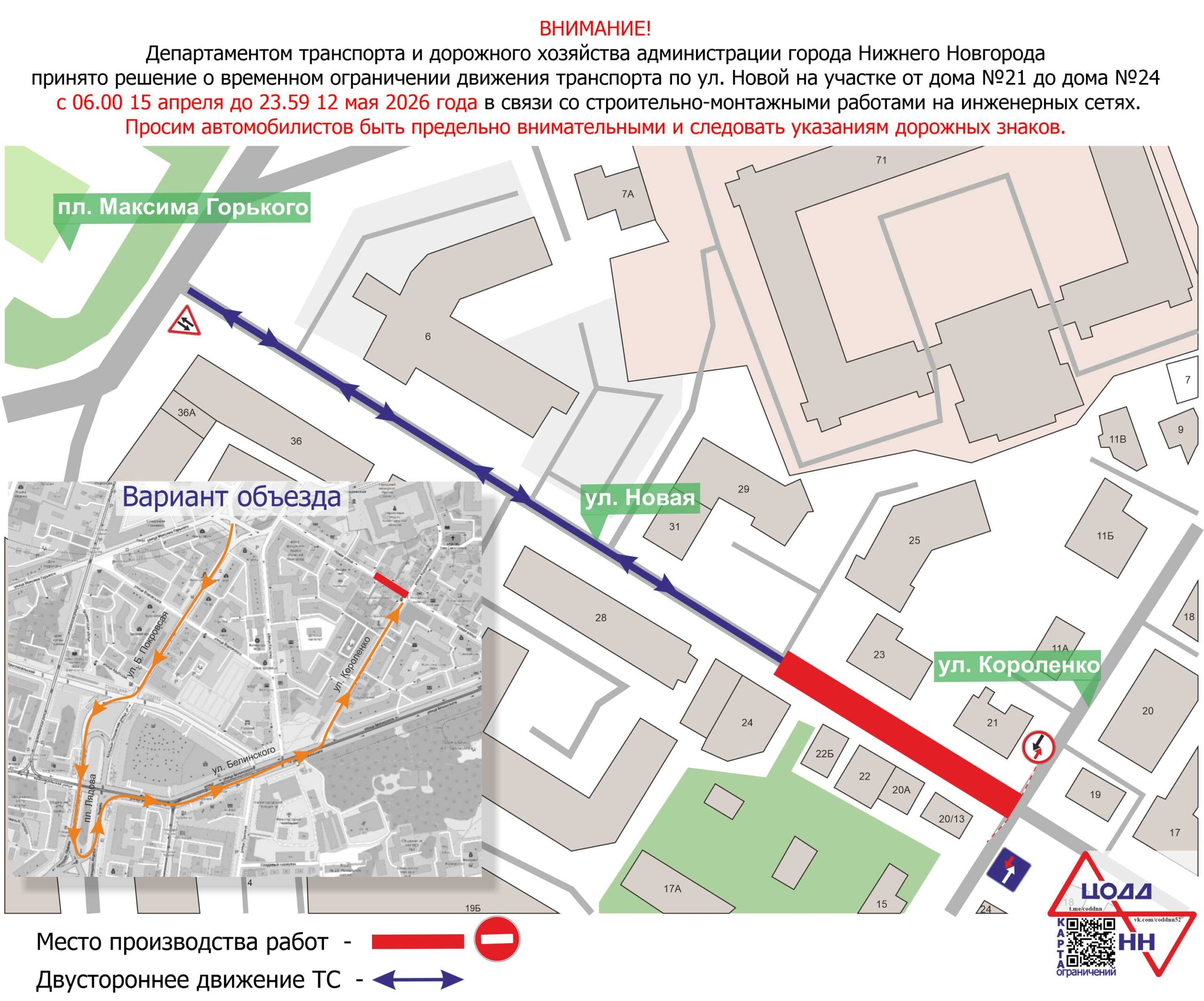 В связи с этим на участке улицы от пл. Максима Горького до места проведения работ вводится двустороннее движение транспорта.